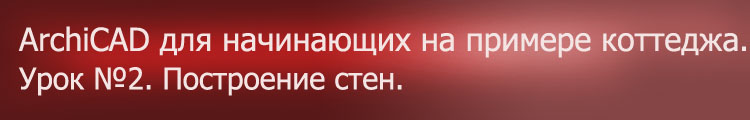 Открываем ArchiCAD, при этом автоматически запускается ОКНО ПЛАНА ЭТАЖА. Итак начнем с построения стен. Для этого надо навести курсор мышки на инструмент стена (Wall) на панели инструментов. Чтобы задать параметры стены надо нажать на этот значок двойным щелчком мыши. Здесь уже даны параметры стены по умолчанию. Но мы их поменяем: там где форма и расположение - высоту сделаем не 3020, а 2700; текущий относительный этаж и проктный ноль оставим 0; теперь справа: верхняя строчка-это привязка здания, ее мы трогать не будем, оставим ноль, вторвя строка-это толщина стены, тоже так и оставим 640 - нормальная стандартная стенка; там где модель - можно поменять цвет нашей стенки, например, я меняю на краску-06 (красный цвет) в верхней калонку и нажимаю на значок, объединяющий все три строки где выбираются цвета. Все, теперь нажимаем ОК и окно автоматически закрывается. По умолчанию масштаб у нас 1:100, т. е. в 1мм=0,1м. Как мы видим, наше рабочее полотно вклеточку и это очень удобно. Теперь смотрим на верхнюю панель, там есть также значок СТЕНА (Wall), в этой же строчке правее есть 4 значка - геометрические варианты стен,наводим мышку на первый значок, нажимаем на него и удерживаем: появляются еще 4 варианта: просто прямая, зигзаг, прямоугольная и прямоугольная под углом. Выбираем прямоугольную. Теперь наводим стрелочку в уголок какой-нибудь клетки и нажимаем левой кнопкой мышки. Появился крестик - это начало стены. Для удобства это место надо увеличить, т.е. как бы придвинуть к себе для этого просто крутим колесико на мышке. теперь рисуем квадратик, к примеру, 8*8метров. Теперь вам наверное интересно посмотреть что получилось в 3D. Для этого есть значок на самой верхней панели (Открыть 3D-окно F3), или на путом месте без объектоа нажать правой кнопкой мышки-показать все в 3D. Чтобы посмотреть наше творение со всех сторон, надо нажать правой кнопкой мыши и выбрать там орбита. должно получиться так: